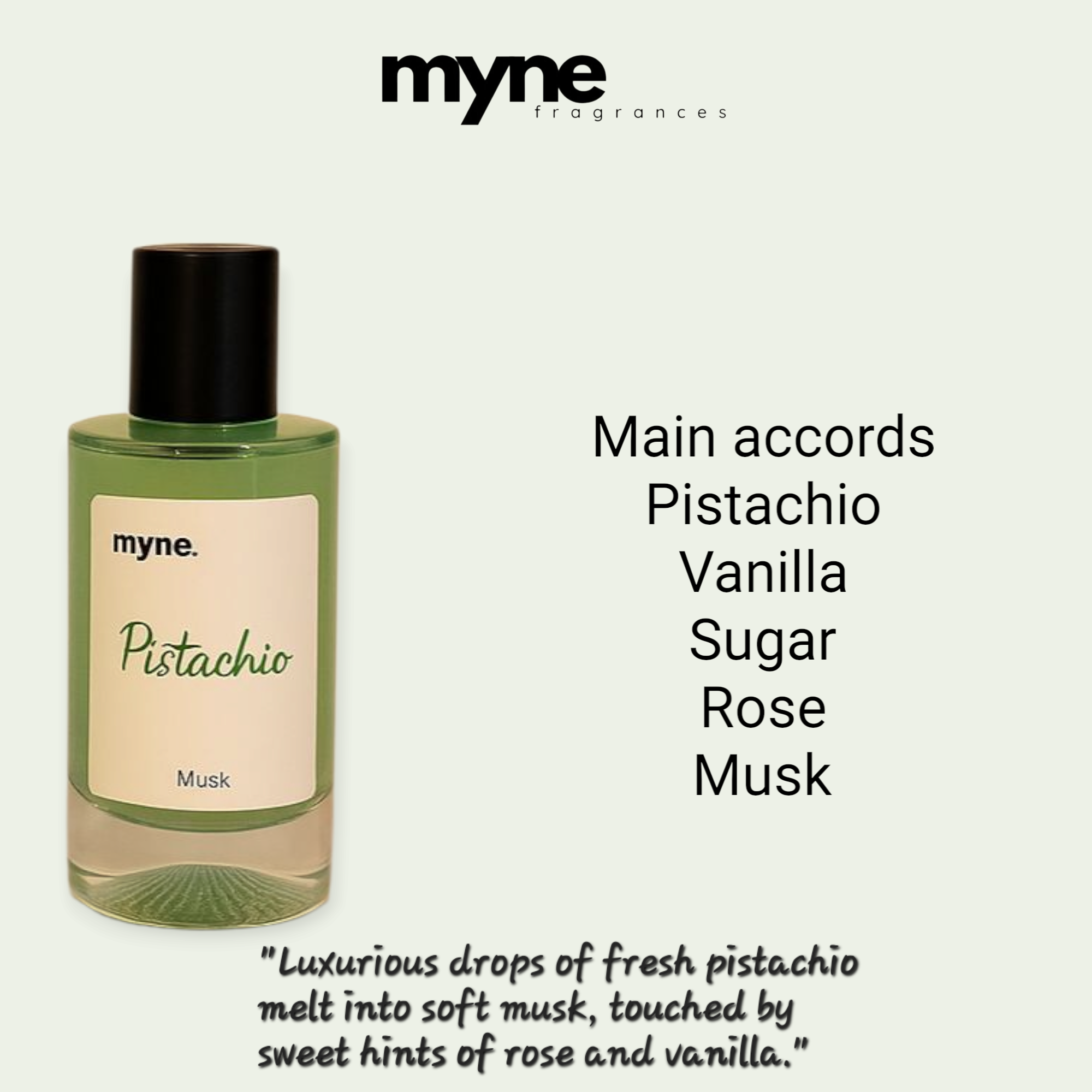 "Luxurious drops of fresh pistachio melt into soft musk, touched by sweet hints of rose and vanilla."